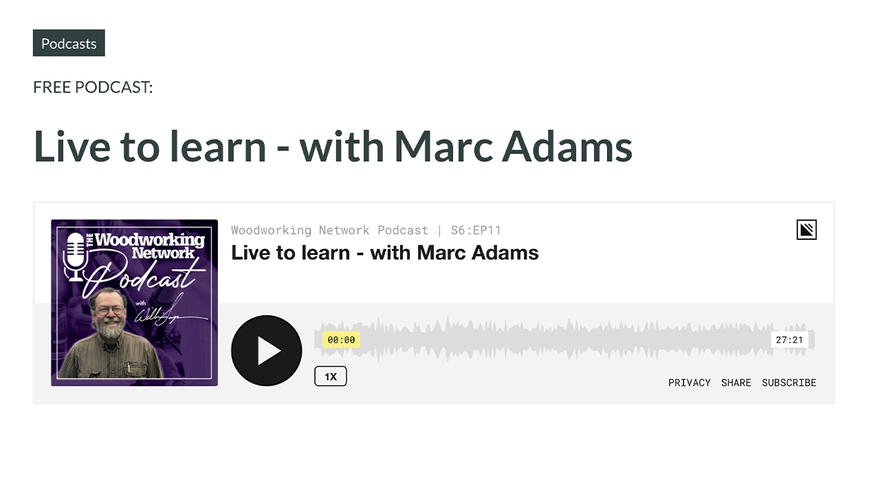 In this episode of The Wood Life Podcast, host Duston Moore sits down with woodworking legend Marc Adams to discuss the origins of his world-renowned woodworking school, from its humble beginnings to its current offering of 250+ workshops and a diverse collection of teachers from all over the world. ~ The Wood Life Podcast