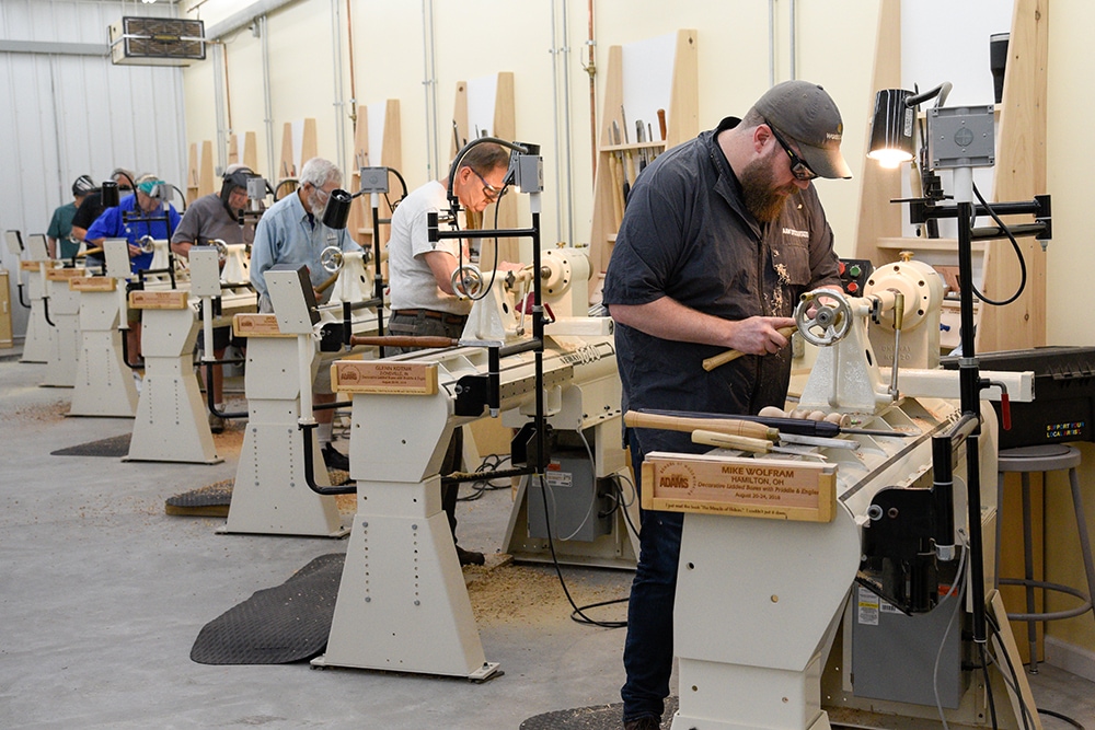 The Marc Adams School of Woodworking is conveniently located just 12 miles south of Indianapolis and is one of the largest hands-on woodworking schools in the world, with well over 40,000 square feet of space. It is possible to run seven independent workshops simultaneously in completely different facilities.