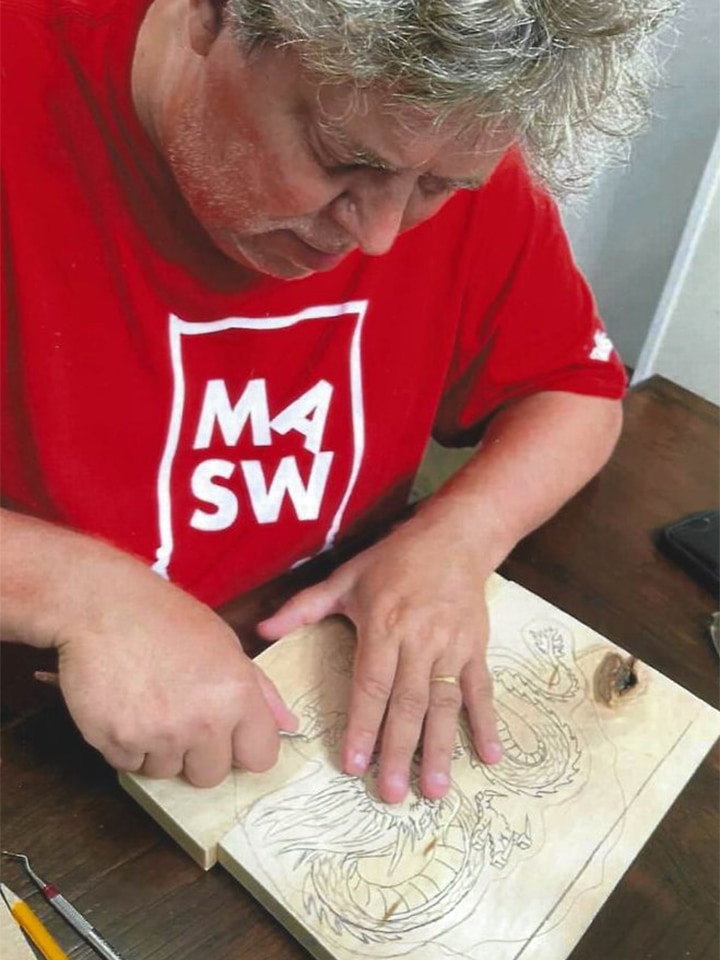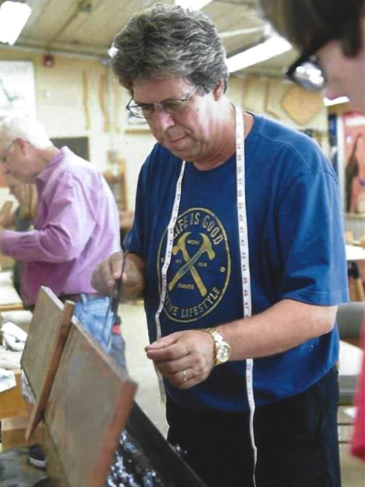 Both Herman and Paula worked at MASW from the very beginning. Paula became our secretary, who wore many hats over the years, and Herman, along with Zane, helped me gut the original building and turn it into a school. From the beginning, he would help me clean the shop after each class and prepare wood for upcoming classes. During his summer breaks, he assisted here from the mid-90s until 2015. Once his school went to year-round, his time to help at MASW became limited to just a few weeks during the summer and a week or two during his fall and spring breaks. Herman loved to chip carve, do marquetry work, and make Shaker oval boxes. He taught his first class at MASW in 2006 and continued to teach chip carving and Shaker oval boxes until 2024.