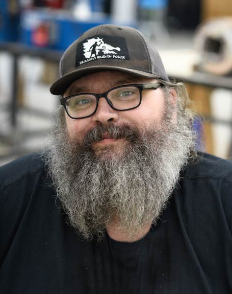 Matthew Parkinson, JS discovered his passion for bladesmithing as a teenager after first being inspired as a child. He has been a professional bladesmith since 1998 and co-founded Falling Hammer Productions and Dragon’s Breath Forge, which produce custom knives, swords, axes, and armor for clients worldwide.