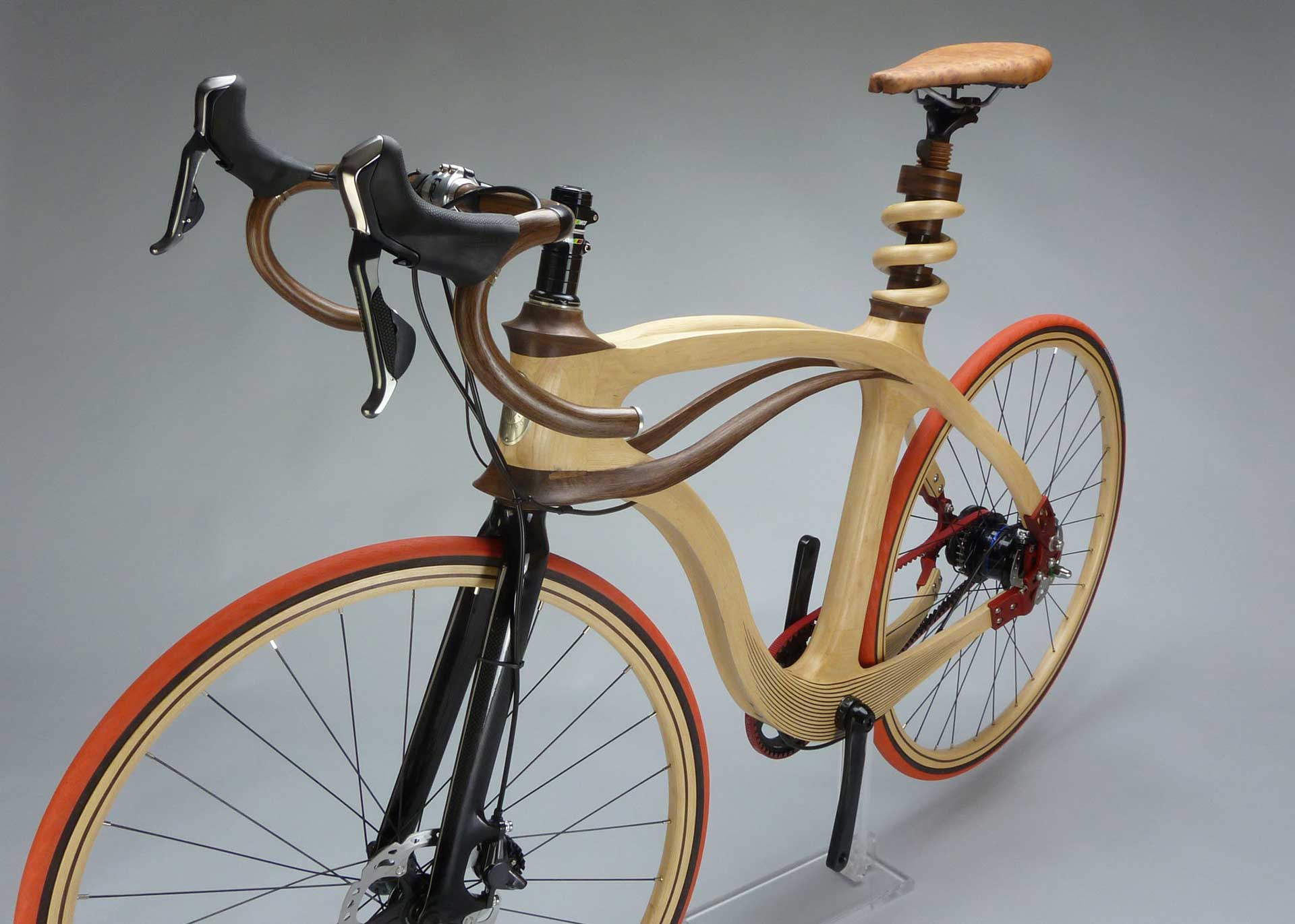Mark Osgood is a lifelong woodworker. His first major project was building a sailing dinghy when he was 13. Growing up around water, he worked in boatyards in Florida, Ohio, and Chicago, doing extensive repairs. He had a long career in the Chicago futures markets and found woodworking to be a helpful stress reliever. His family’s interest in bicycling led him to merge the sport with woodworking. He has been building wooden bicycles since 2013—full time for the last three years. His award-winning work has appeared in art shows and presentations to woodworker guilds and bicycle clubs. Mark won the 2016 Veneer Tech Challenge award and the Excellence in Woodworking award at MASW. Examples of Mark’s bicycles can be seen at RollingArtBicycles.com.