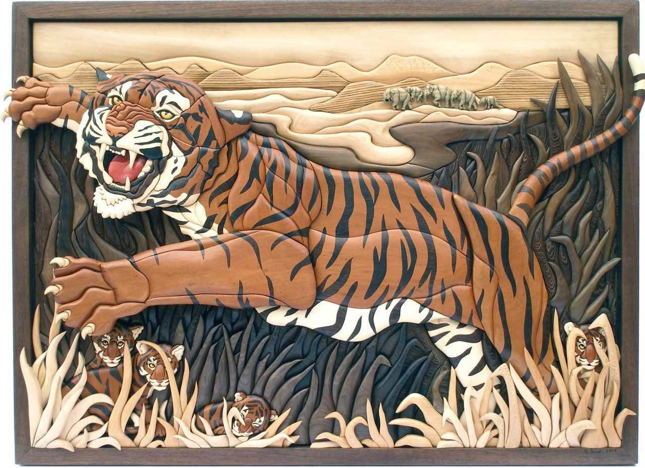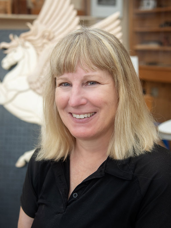 Kathy Wise has always had a strong love for animals along with a talent for sculpture. She has worked with many giftware companies, including Enesco, Simson, Westland, United Design, and Encore Group. Kathy has designed over 1,000 different animal sculptures in over 40 lines that have been sold worldwide. She has worked in many media, including bronze, ceramic, and wood. Kathy’s first intarsia pieces came about in 2002 when she began designing custom patterns for her father-in-law’s intarsia craft business. In the fall of 2004, Scroll Saw Woodworking & Crafts published the first article by Kathy; she has been in 60+ issues and included in over 10 other woodworking pattern-design books. Kathy has over 950 intarsia patterns available. Her work has won five Intarsia first-place awards (2006–2011) and the People’s Choice Award (2011) in the Design in Wood show, San Diego. She is the author of four books: Intarsia Animals: Woodworking the Wise Way; Intarsia Birds: Woodworking the Wise Way; Intarsia Woodworking Projects; and Intarsia Woodworking for Beginners. Kathy is a featured artist in The Difference Makers, published by Lost Art Press.