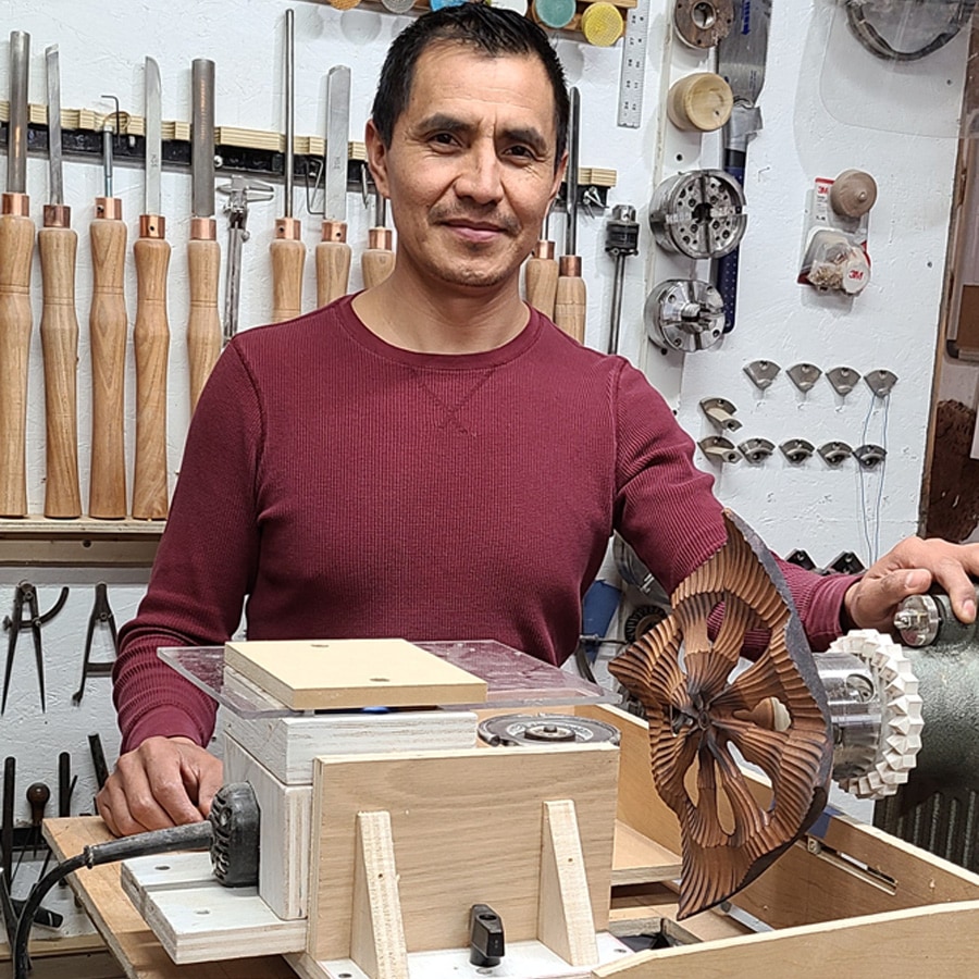 In this hands-on workshop, students construct an ornamental carving jig-a versatile fixture that transforms a conventional woodturning lathe into a tool for creating intricate, repeating patterns inspired by the ornate work of the Rose Engine. Built from plywood and readily available hardware, the jig is designed for customization to fit nearly any lathe, making it a practical addition to the home shop. Once complete, participants put the jig to use by designing and carving a rosette, a decorative element that can stand alone or serve as inspiration for future projects such as the Wall Sculpture class. By the end of the course, students leave with a fully functional jig, a finished rosette, and the knowledge to adapt the jig for continued creative exploration.