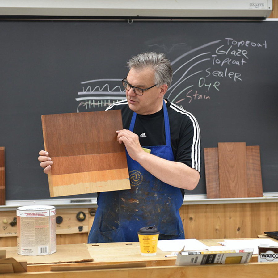 Before the first cut, turned leg, or carved detail, the ultimate success of a project depends on more than craftsmanship-it depends on the finish. Color and finish are as critical to the design as dovetails or joinery, influencing whether a piece looks antique, modern, or inspired by Greene & Greene. In this immersive two-day workshop, finishing expert Tim Puro will guide students through the essential techniques of coloring and finishing wood. Participants will work hands-on to create sample panels and explore how color choices transform a project. By layering colors rather than relying on a single stain, students will gain the skills to produce finishes that are rich, nuanced, and professional. This weekend course offers both practical techniques and insider knowledge-an invaluable experience for anyone aiming to elevate their woodworking projects.
