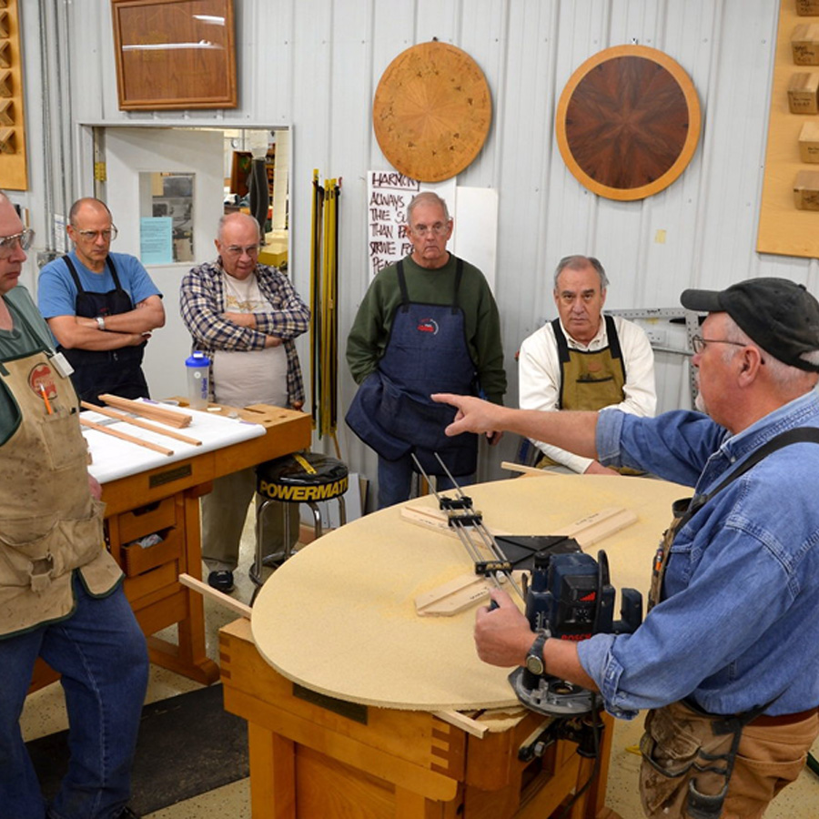 Ovals are an intriguing shape, but they can be hard to get the proportions right. In this class, students can make the coffee table in the photo (30” x 46” x 16”H) or make one to their own size requirements. Students can then change the purpose and create an oval end table or hall table, even a dining table. Learn how to lay out and cut ovals by hand, use a shop-made router, or even with a purchased router jig. The smooth arcs on the top are done with a shop-made bandsaw jig. The ebonized base for the coffee table was stack laminated, but there are other base design options available.