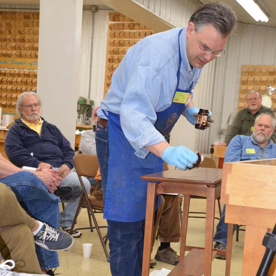Does fine finishing require exotic materials and expensive spray equipment? Absolutely not! If you understand the properties of these hardware store materials, you can finish like a pro: Zinsser SealCoat universal sanding sealer, aerosol gloss spray lacquers, Minwax Golden Oak and Minwax Puritan Pine stains, Old Masters heavy-bodied Cedar and Dark Walnut stains, Old Masters Natural grain filler, and Red Devil lye and roofing tar. Over a period of two days, Tim will help you master these conventional (and unconventional) finishing materials to produce professional-looking finishes for cherry, walnut, mahogany, and even birch plywood. While the material list is short, Tim will show you how to skillfully use these products to create multi-step, professional-looking finishes. Students will spend the majority of their time in the finishing shop, applying stains and dyes to sample boards to create finishes that are rich and deep-looking. At the end of the weekend, students will leave with sample finishes for birch, cherry, walnut, and pine that look fabulous, and even more importantly, they will acquire the skills to participate in the finishing process, not just observe the results. As for the roofing tar and lye secret, you will have to sign up for the class to learn what that is all about!