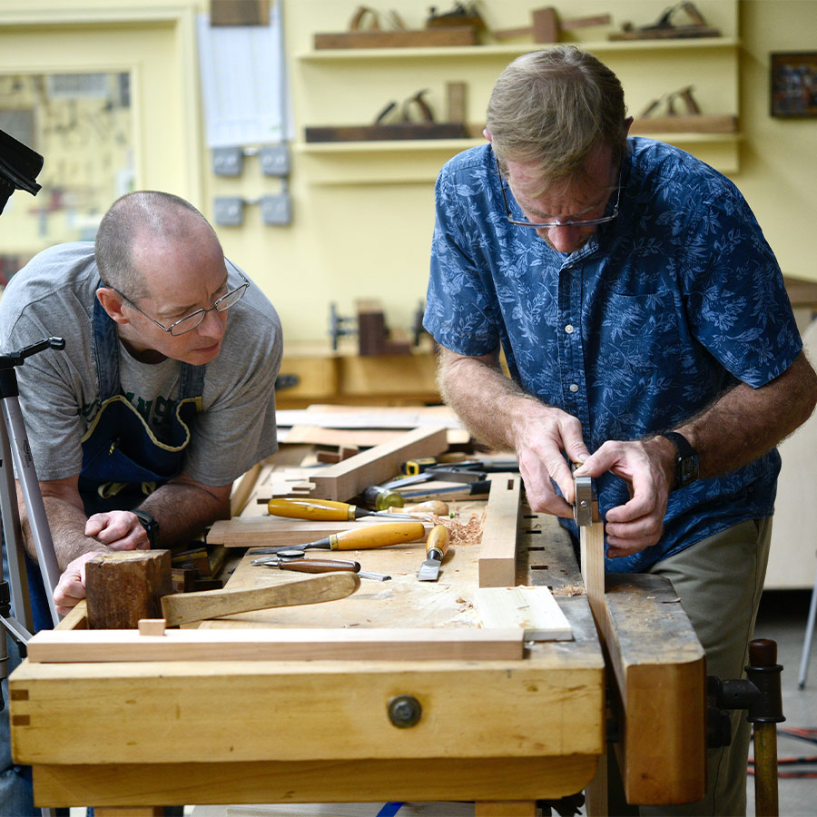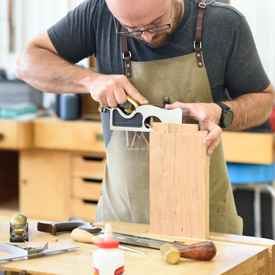 This class is going to be a great opportunity to learn the fundamentals of handskill work from sharpening to primary joinery used in traditional woodworking. Students will learn to use saws, planes, chisels, and scrapers, as well as how to hand-cut dados, dovetails, and mortise and tenons-all by hand. Frank draws on 37 years of woodworking experience. Having trained under a traditional apprenticeship, Frank will share what he has learned over three decades of building furniture day in and day out. Students will leave with the confidence to hand-cut joinery as well as tune up and use a hand plane to its fullest advantage. Using hand tools will help take your work to a new level. They can give a craftsperson the ability to finesse joinery, improve efficiency, and make complex tasks safer. Today, most woodworkers are project-oriented with a focus on just getting the project completed instead of focusing on the actual skills used in making the project. Rushing through a project often restricts the maker from the learning process, which is why Frank places so much emphasis on the techniques. Although this class will be technique-based with lots of practice, students will make some simple projects utilizing the skills they have learned in the process. Essentially, the project is merely a vehicle in which to learn the skills. By the end of the week, students will have the skills to make and fashion a simple dovetailed box. This class will be extremely beneficial to anyone, even if you are not a hand tool woodworker.