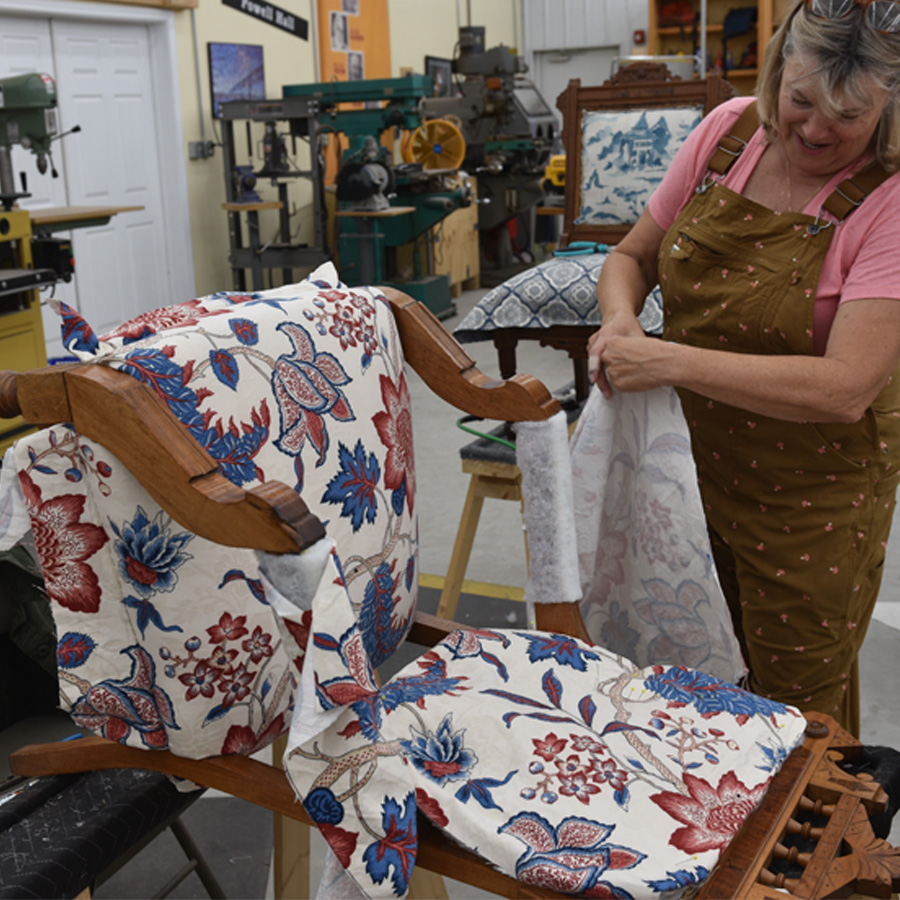 Learn the essential techniques and skills needed to reupholster furniture by starting with a classic Eastlake style chair. This hands-on class is perfect for beginners with little to no upholstery experience, as well as those looking to refresh and strengthen their skills. Every upholstery project begins with the foundation. In this course, students will take a chair from the bare frame to the finished fabric and trim, gaining the knowledge and confidence to approach a wide range of upholstery projects. Each student will be provided with a chair frame and basic supplies to complete a full-size upholstered chair. Learn how and why to use upholstery tools for stapling, tacking, and sewing. Students may also bring their own chair (with prior approval), provided it is similar in construction to the class project. To personalize your chair, students are encouraged to bring three yards of decorative upholstery-weight fabric to use as the finishing cover. By the end of this course, participants will have a fully upholstered chair and the foundational skills to take on future projects with confidence.
