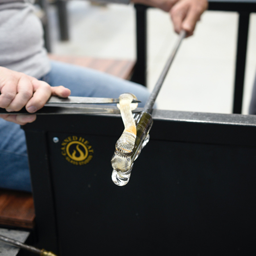 This weekend course focuses on using a variety of hand tools to shape molten glass into small- to medium-sized sculptures. Students begin with basic drawings and then bring their ideas to life in glass. The class emphasizes figurative, animal, and nature-inspired forms while highlighting proper timing, heating, and tool use to maximize efficiency during the sculpting process. Participants will work in two-person teams, practicing good shop etiquette and communication to achieve their goals at the bench. Simple glass coloring techniques will also be introduced to accent and enhance the finished sculptures. This course is designed for those with prior glassblowing experience. Instructor Nic recommends that participants complete one of the school’s previous weeklong or weekend classes to be best prepared for this workshop.