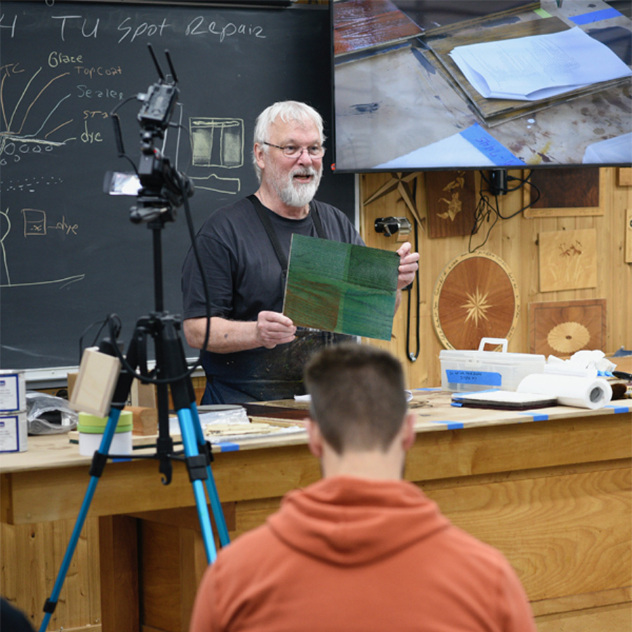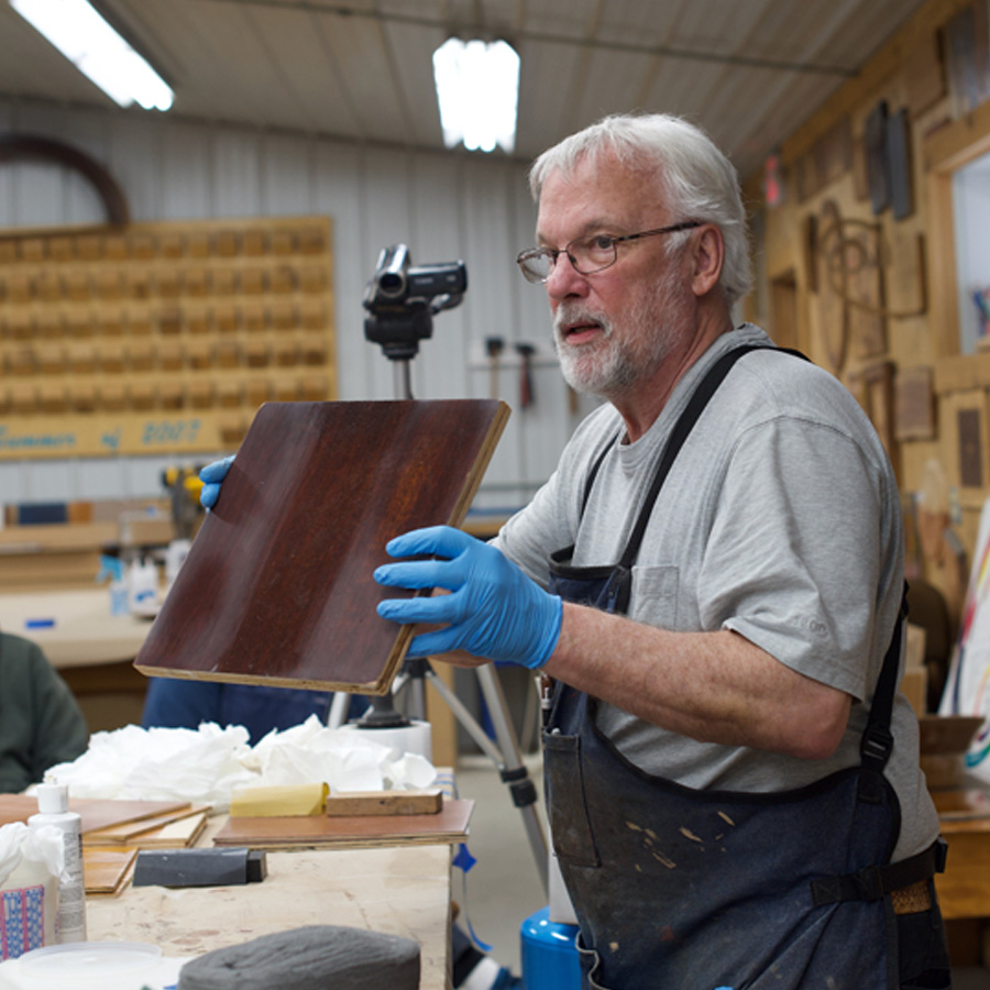 This five-day hands-on finishing class is designed to help students understand which finishing schedule is best for their projects. The goal is to learn what it takes to create a beautiful, lasting finish through a variety of finishing systems. These systems include changing the color of wood with dyes, stains, toners, and glazing techniques. Everyone will have the opportunity to apply the finishing systems of their choice to their assigned lab projects, and students are encouraged to bring small projects to finish during the week. Most of this class will be in the finish shop rather than the classroom. However, everyone will have enough classroom time to learn how to accurately apply finishes with predictable results. Students will learn to use hand-rubbed finishes such as shellac, French polish, and brush-on finishes, as well as spraying equipment. Once the coatings have been applied, adjusting the sheen using rub-out techniques and maintaining your coating will be demonstrated. Mitch and Tim will teach how to solve common problems and fix finishing defects such as blotching, orange peel, brush marks, and fisheye, and how to achieve the ultimate finish. There will also be an introduction to the basics of color matching. Anyone who works with wood and enjoys its beauty will benefit from this class.