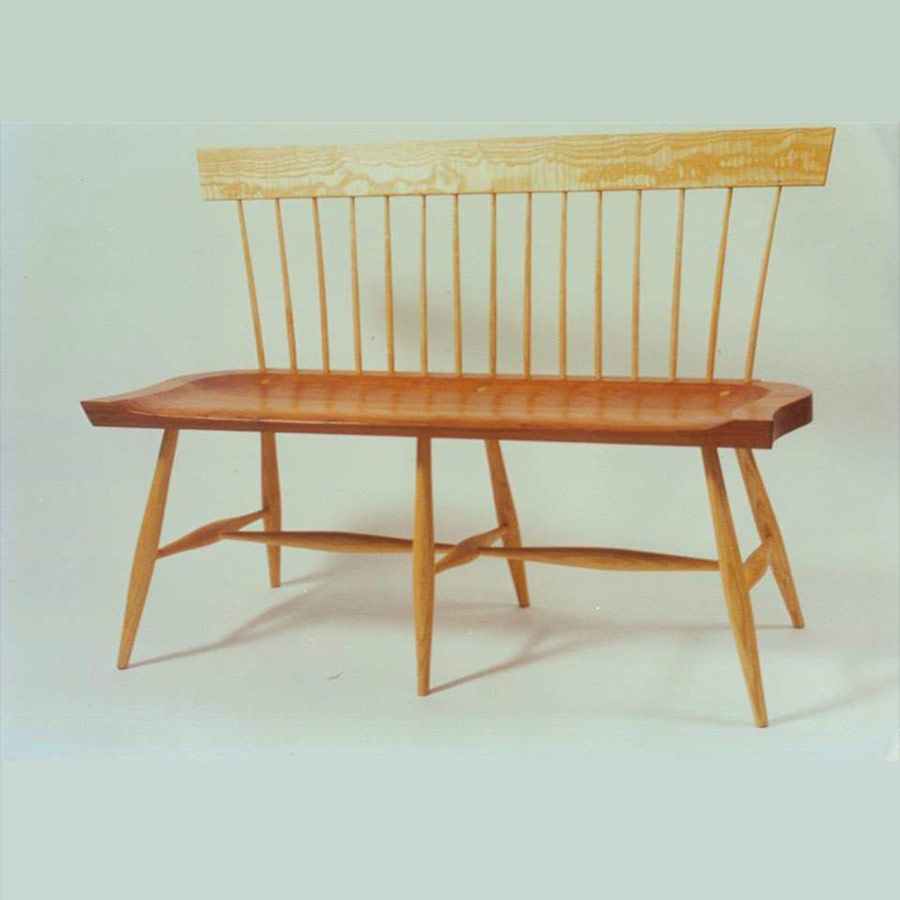 This class will be dedicated to evolving the classic Windsor form and stylizing it for a contemporary setting. In this class, participants will be designing certain elements and building a two-person settee. Design choices can be determined in wood selection, seat pattern design, leg shape, stretcher configuration, and finishing options. Methods of construction are the same as traditional Windsors, namely using green wood to achieve wet/dry joinery and structural integrity. Spindles are to be rived and shaped with a drawknife and spokeshave. The leg holes are bored and reamed for a tapered wedge tenon. Seats are carved with a scorp and a travisher. Harder woods for carving, such as cherry, can initially be power ground and finished with hand tools. Lathe turning; mortise holes drilled by hand following sight lines; leg mortise to be drilled at the drill press. Upper crest rail will be cut and shaped from a single board. Assembly will be done at various increments, starting with the leg and stretcher fitted to the seat. The main emphasis is to take the time to think through the processes, to learn new skills, allowing time for exploration of finishing details.