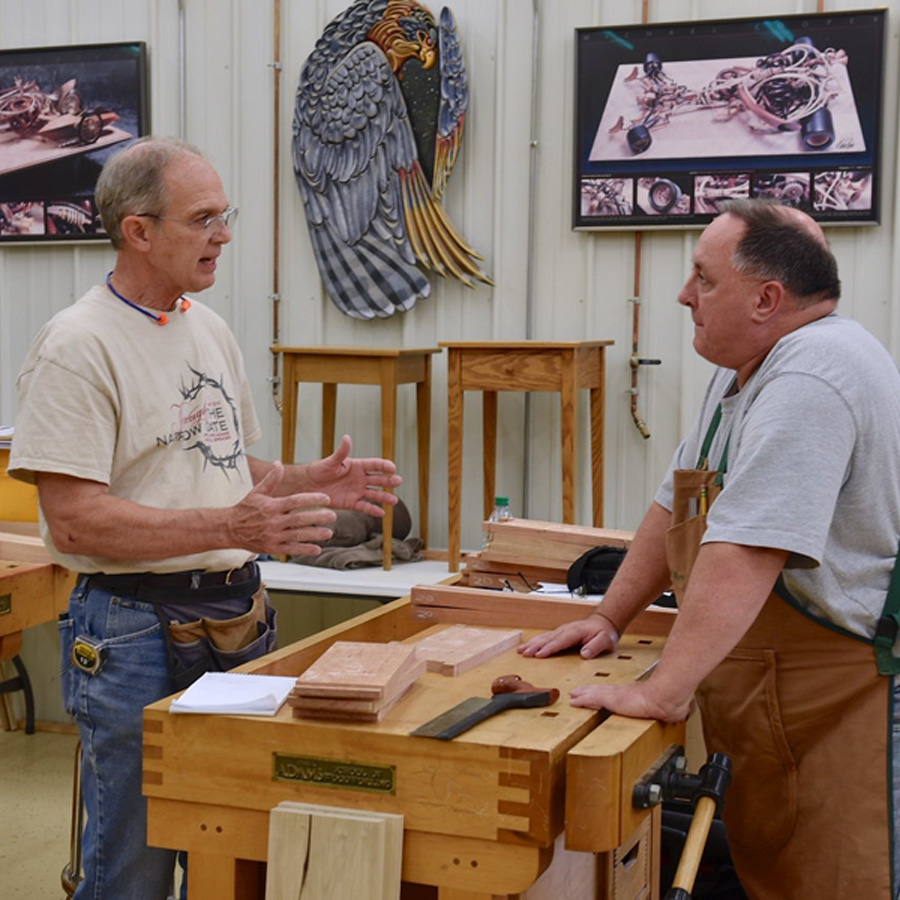 If you have desired to build beautiful handcrafted solid wood furniture but did not know what to do or where to go to get started, then this class is for you! Each student will construct and take home a fully assembled cherry lamp table in the Shaker style. Students will learn how a tree grows, how the different wood grains are formed, and where they are best used in furniture parts. During this two-day course, students will have an opportunity to learn how to mill rough-hewn lumber, lay out the joinery, cut mortise-and-tenon joints, align the orientation of the grain for strength and aesthetics, use hand tool methods, cut tapered table legs, and determine the best ways to assemble and glue up the table. Techniques for attaching tabletops will be discussed and demonstrated. Each student will receive a free CD containing a PowerPoint slide show of all class instructions and demonstrations. Each student will also be given a commemorative hardwood clipboard, custom made for the class, which can be used during the course to organize notes and handouts.