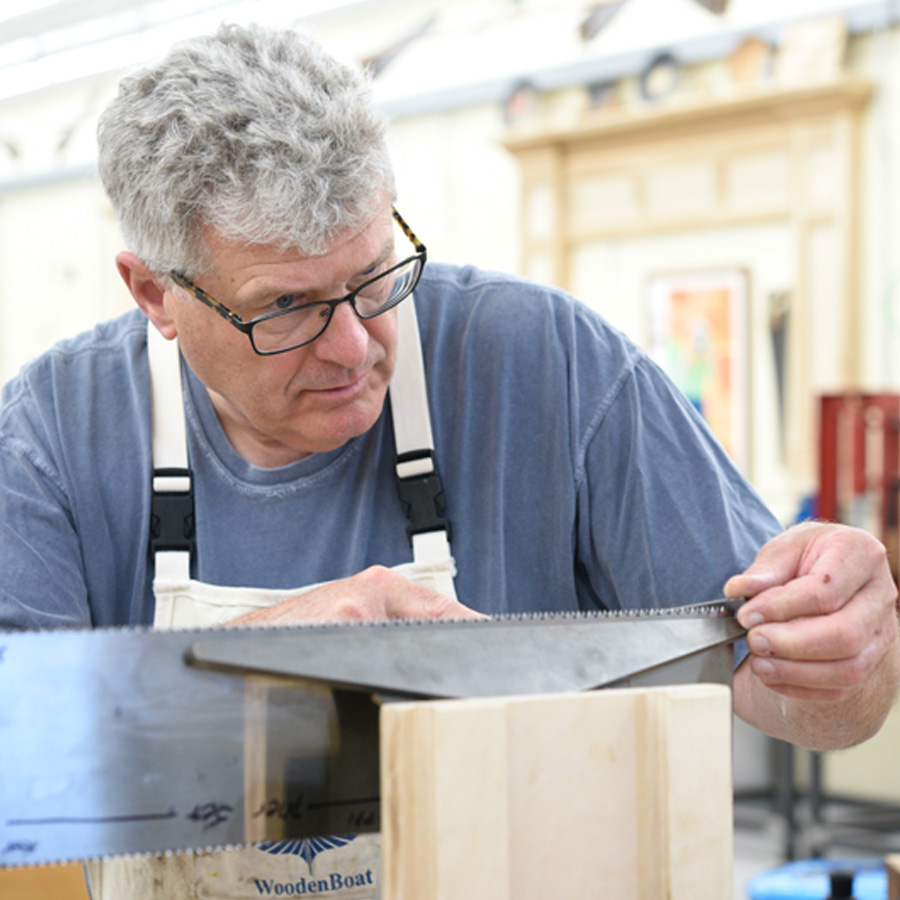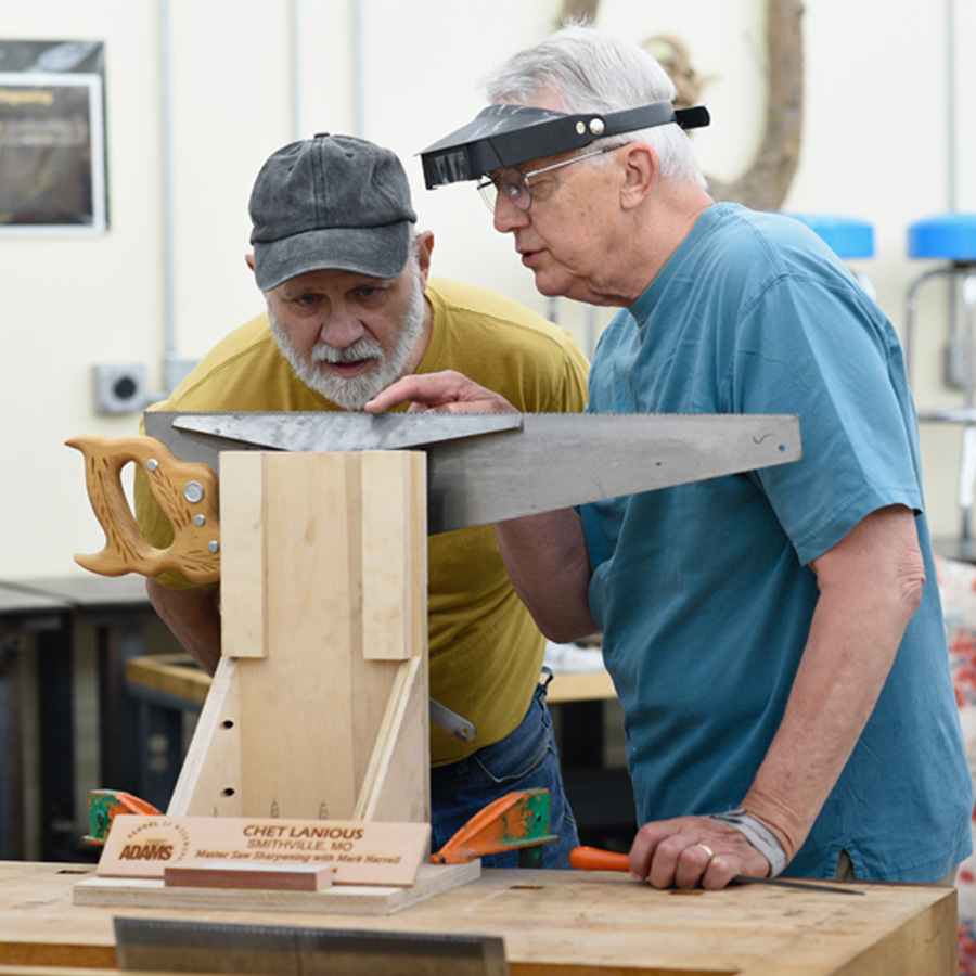 Let’s demystify saw sharpening and master the skills required to restore your vintage saw collection with confidence, and build your own Bad Axe saw with Mark Harrell, owner of SawSharp and founder of Bad Axe Tool Works. Mark’s five-day course enables hobbyist woodworkers at large to maintain, retension, retooth, hammer-set, and sharpen-to-joint hand, panel, frame, and backsaws across a variety of pitches. The course culminates in a graduation exercise in which the student builds his/her own Bad Axe Joiner’s Saw. Instructional methods center on historical techniques and best practices employed by craftsmen from over three centuries of Western traditional saw making.