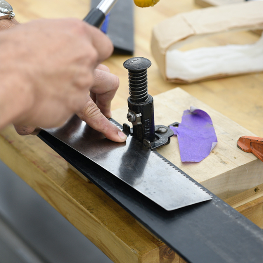 - Hammer-set and sharpen-to-joint carcass, tenon, panel, and handsaws across a variety of pitches