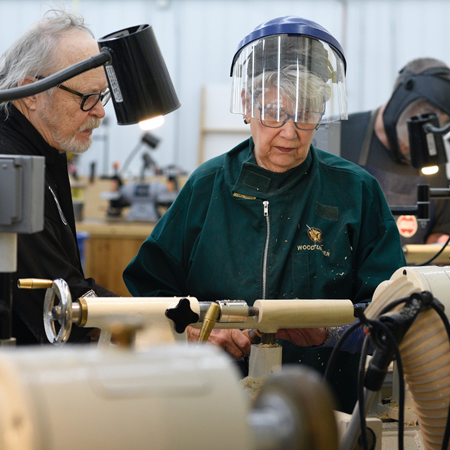 This class includes something for everyone, whether a new turner or someone wishing to build and improve upon their woodturning foundation. Alan discusses the basics of spindle turning and bowl work, to executing a fine-fitting lidded box. You will have your own lathe and plenty of hands-on time to work on a wide range of projects. The week begins with a detailed discussion of lathes, tools, sharpening, wood selection, and safety. Special emphasis is given to developing skills with shaping, edge grinding, and honing woodturning tools. Students will be coached and encouraged to produce at least one piece from three areas of woodturning. The first is between-center turning, which includes such items as tool handles, furniture parts, spinning tops, rolling pins, wine stoppers, etc. The second area is facework, which includes bowls, platters, plates, drawer or cabinet pulls (for screw mounting), stool seats, etc. This section will include discussions and demonstrations relating to working green and dry wood, cutting blanks for bowl work, mounting techniques, methods of reverse chucking for bowl bottoms, and optional grinds for deep-fluted bowl gouges. Plan on turning at least one bowl. The last area to explore will be end-grain hollowed items such as lidded boxes, goblets, end-grain bowls, toothpick holders, scoops, etc. Again, turn at least one item from this category. Emphasis in Alan’s class is placed upon cutting and shear scraping techniques with traditional tools. Methods of sanding and finishing all projects will be covered in detail. In addition, Alan always works in some unexpected topics during the week to make the class engaging and exciting.