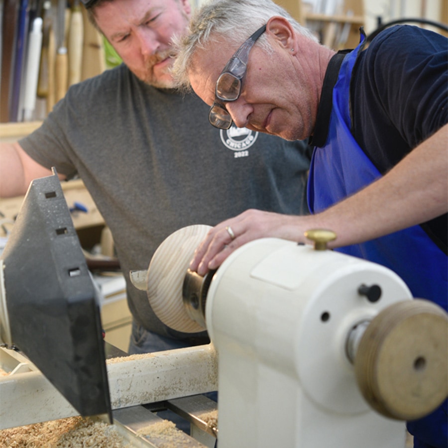 All classes have a starting point, and Jimmy will start this class by showing the correct way to sharpen your turning tools. He will then discuss the different tool profiles and commercial sharpening systems, covering both pros and cons. Students will begin with some simple spindle work, learning the basic cuts in spindle turning. Next, they will explore the use of the skew, roughing-out gouge, spindle gouge, and parting tool. A spindle turner can easily switch to turning bowls, but a bowl turner will find it more challenging to learn spindles! After spindle turning comes bowl turning. Students will learn tool techniques and bevel angles. They will also learn how to easily obtain a pleasing curve, which can then be refined to the finished curve. Other projects will include turning a box with a precisely fitted lid, turning a symmetrical oyster box, and making an Oriental-style box. This Oriental box has it all: square turning, fitting a lid, turning at high speed, and using proper tool technique. Another creative portion of the class will focus on ways to color a project to emphasize the grain or figure. This will be combined with platter turning, concentrating on how to achieve an aesthetically pleasing ogee. Upon completion, you will have a finely finished piece that will undoubtedly boost your confidence. This class is designed for all abilities and will cover most of what you need to enhance your skills, from sharpening, tool selection, aesthetics, and embellishment.